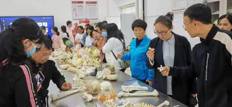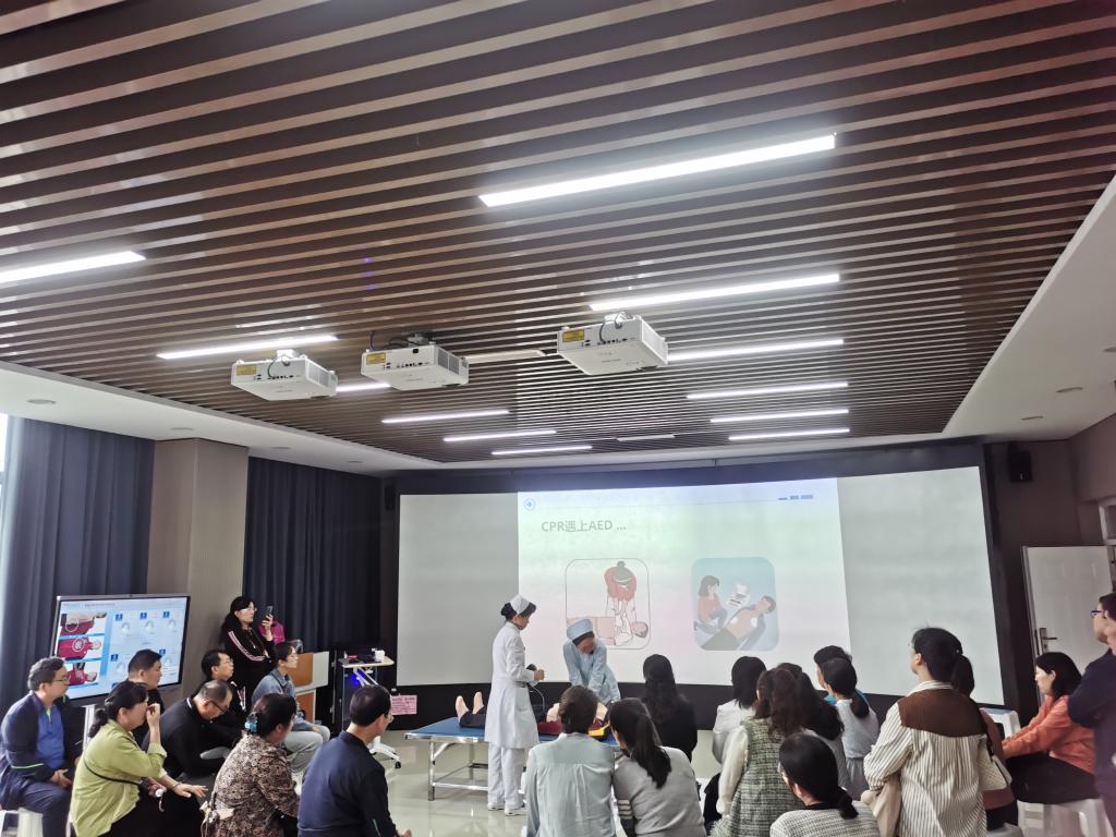 大家在护理公司副经理王文生的带领下,先后参观了护理公司实训室、智慧教室、党员活动室。随后,来到教学做一体化实训室,基础护理教研室的老师们带领大家学习和练习了心肺复苏术、AED的使用和海姆利克急救法。