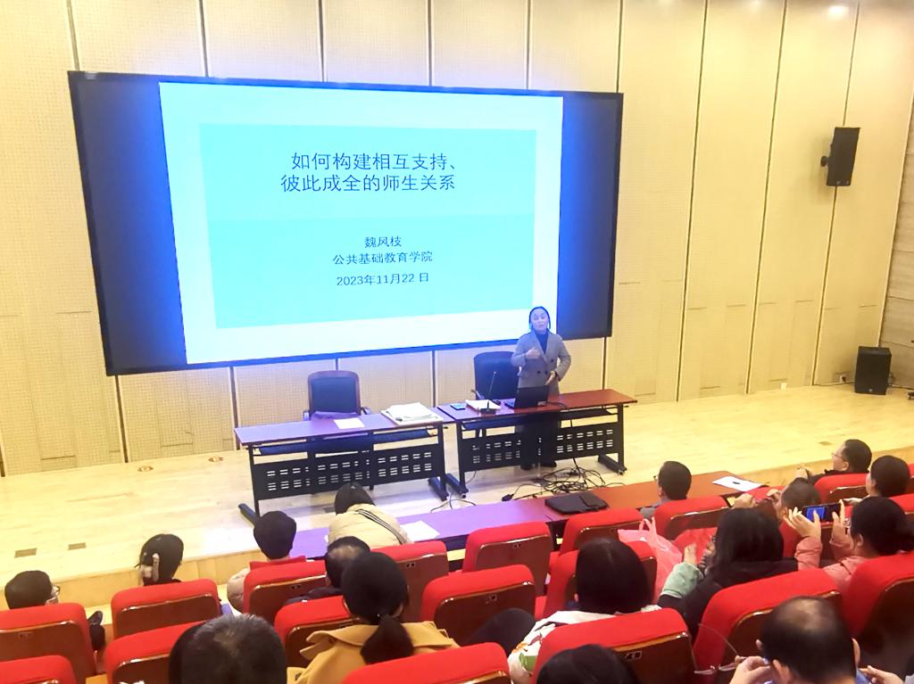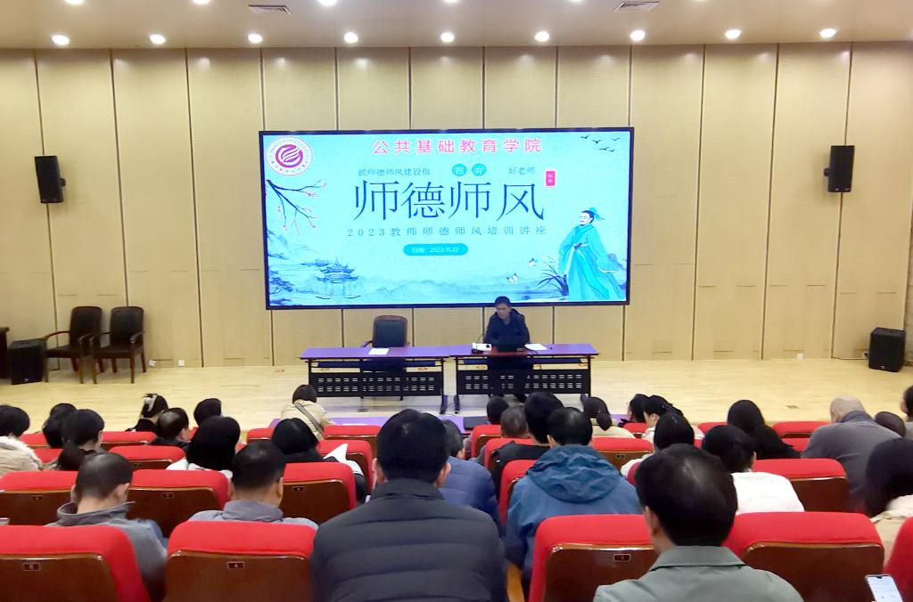 高等数学教研室主任郭建安作了师德师风讲座,他从“教师、师德、师风解读”“ 教师职业道德的内容”“ 加强师德师风建设,增强使命感”三方面,通过音乐、视频等形式对师德师风进行了诠释。大学英语教研室教师魏凤枝以“修师德、正师风、强师能、铸师魂”为主题,从真实感人的公司产品故事讲起,用生动朴实的语言阐释了对新时代师德内涵的理解和感悟。在场教师纷纷表示,此次师德讲坛为全体教职工提供了面对面学习的机会,通过聆听两位老师的精彩报告,大家的思想认识和育人技巧得到进一步提高,责任感进一步增强,教育理想进一步坚定。