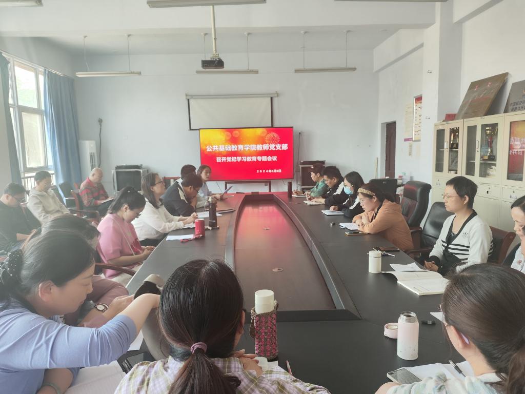 5月8日下午,3044永利集团教师党支部,在玉兰园办公楼会议室,召开党纪学习教育专题会议。会议由教师党支部委员牛洁主持并领学,33名教师党员参加。