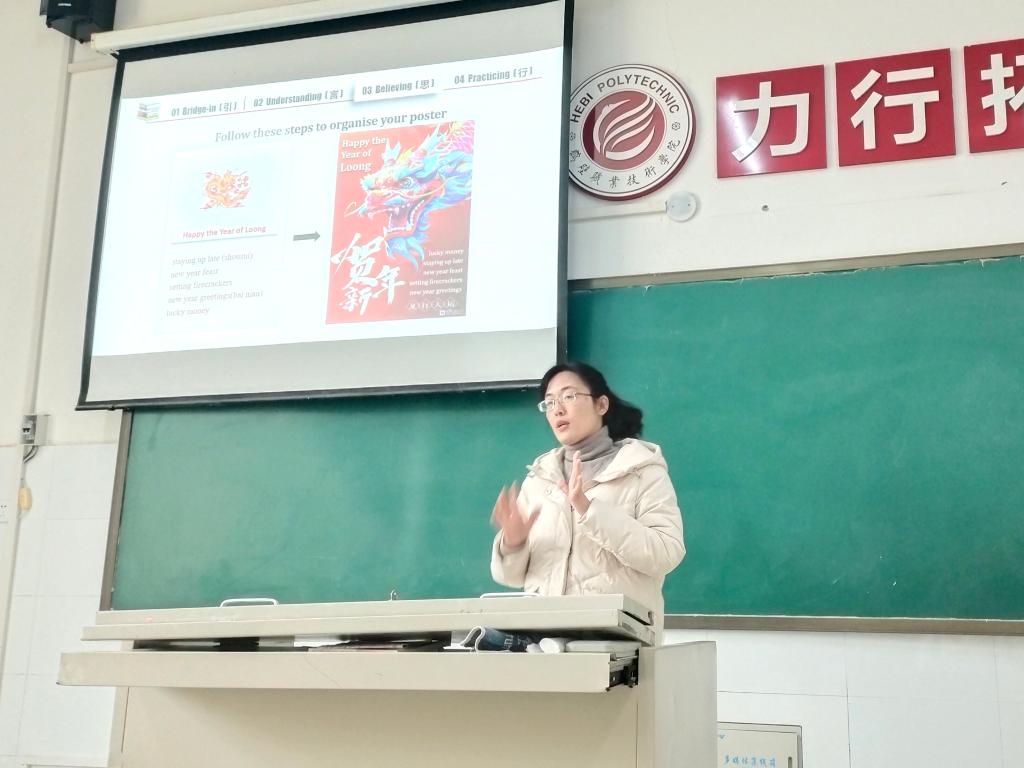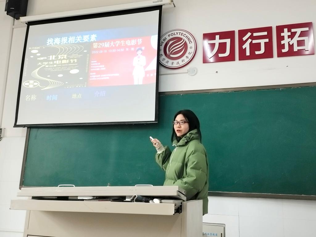 此次集体备课分为三个环节。首先,由张璐和张静老师进行说课,她们两位青年教师分别对英文海报poster的写作和设计进行了说课。两位教师在说课环节中,完整地展示了如何去设计一个精美的英语海报,突出了海报设计的要素,强调配合图文的搭配,助力员工成为英语海报设计师。其次,备课组的老师们进行集体研讨,英语教研室的老师们对两位青年教师的教学内容、举手投足、课件制作等课堂环节进行了详细的研讨,大大提升了各位教师的教学能力。同时大家对英语海报的写作教学设计和实施有了更清晰的思路。最后教研室主任陈芳对本次集体备课进行总结,指出说课的基本环节:说教材、说教情和学情、说教学目标和重难点、说教学方法、说教学流程、说教学依据。